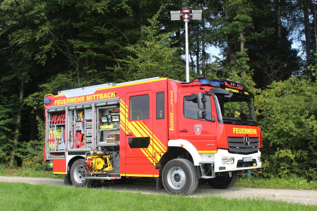 Das Löschgruppenfahrzeug LF20-KatS wurde bei der Firma Lentner in Hohenlinden abgeholt und ins Feuerwehrhaus gebracht. Es soll das bisherige Löschfahrzeug ersetzen, das mit einem Alter von 30 Jahren bereits sehr in die Jahre gekommen war. Das LF20-KatS ist auf dem neuesten Stand der Technik: Neben einem Löschwassertank mit 1.600 Litern Volumen besitzt es auch eine Ausrüstung zur Bekämpfung von Waldbränden, einen hydraulischen Rettungssatz und eine Tragkraftspritze. Mittels einer fest eingebauten Druckzumischanlage kann auch schnell mit Schaum gelöscht werden.